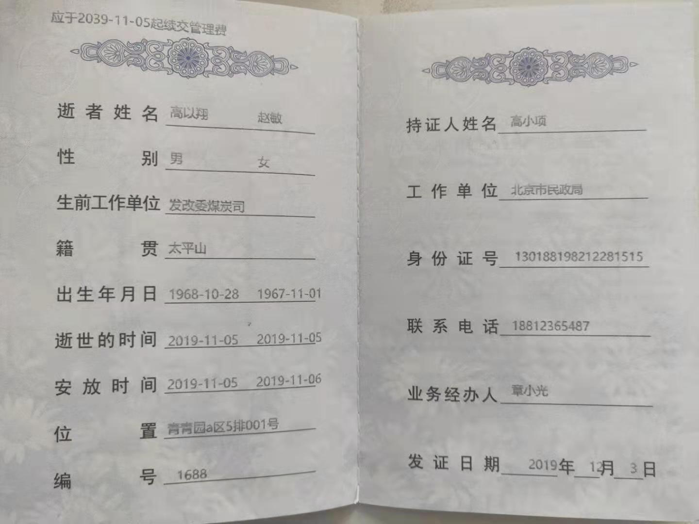 墓证打印效果